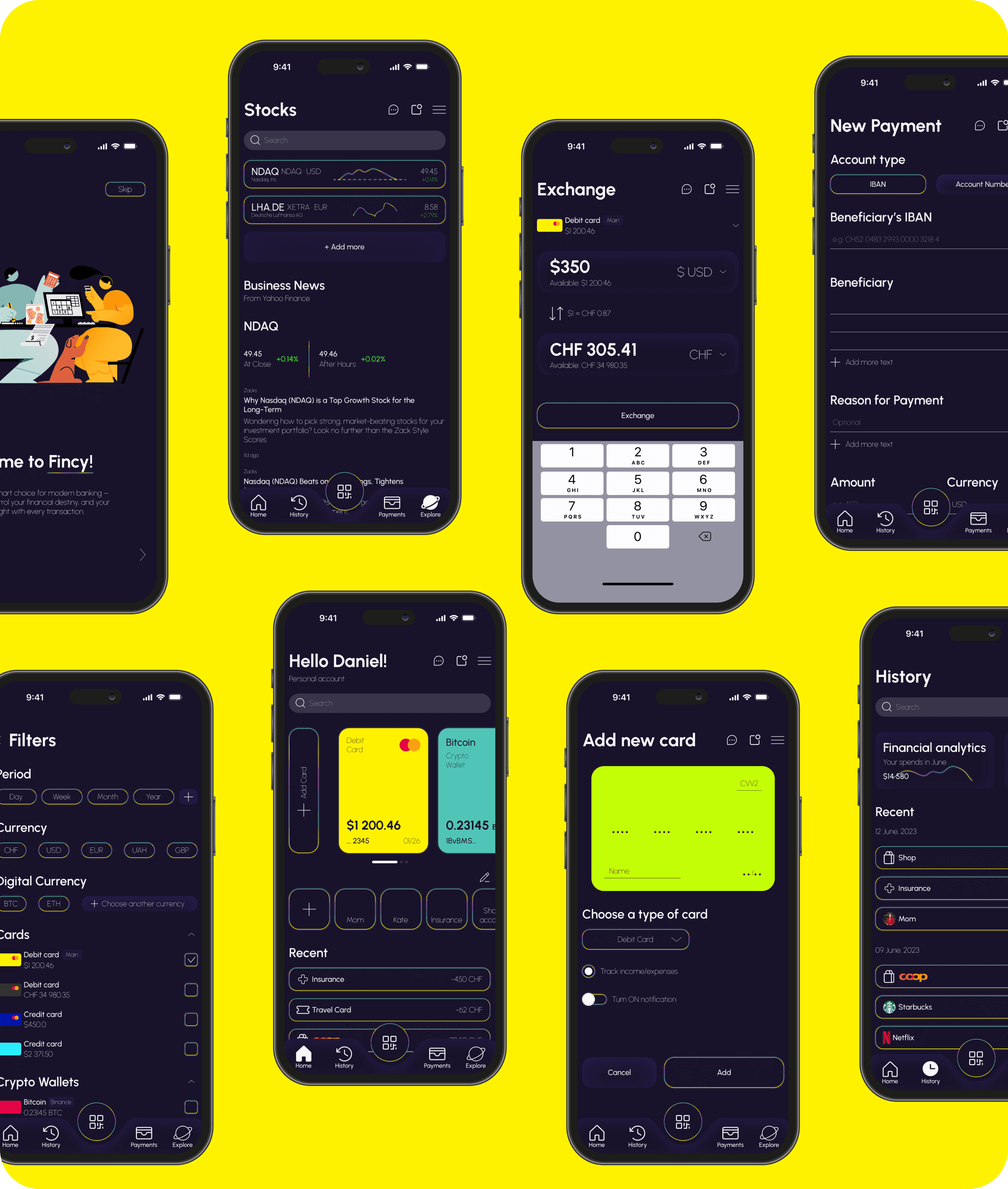 During the research and immersion into the 'Fincy' project brand, we thoroughly examined the competitive landscape, analysing the strengths and weaknesses of existing solutions in the financial applications market. User surveys and interviews allowed us to better understand the needs and preferences of our target audience, identify their main pain points, and desired user experience. We also carefully studied the 'Fincy' brand, its values, mission, and unique features to ensure full alignment of the design and functionality of the application with these key aspects.